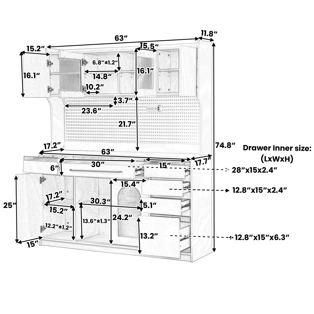 - Expansive Footprint: A massive 63-inch wide and 75-inch tall frame makes this an all-in-one storage solution for your entire kitchen or dining area.