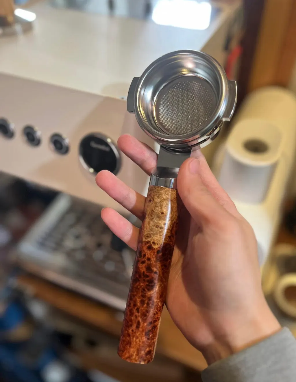 At TimberFlare, our mission is simple: we craft bottomless portafilters with platform-specific fit and handmade character. Every hardwood handle is hand-turned, sanded, and polished in small batches, then paired with a composed flat-lay head for stable tamping and real-time extraction feedback. This configuration is built for verified La Marzocco 58mm setups without losing its warm, heirloom feel.