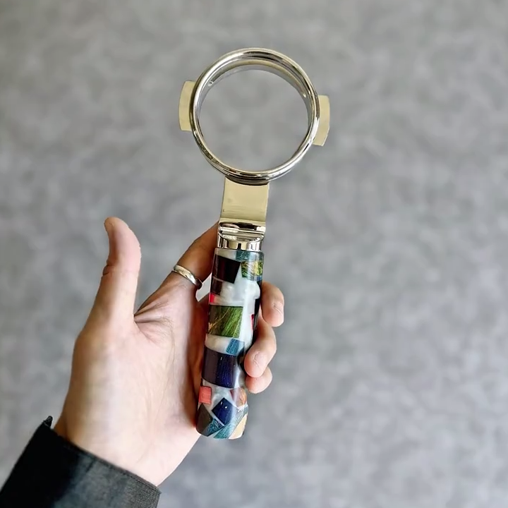 - Material: A composite of colorful burl wood and resin mosaic integrated with a 304 Stainless Steel head.