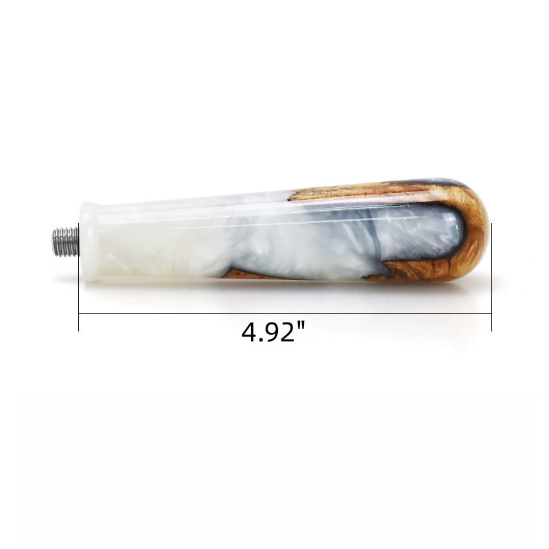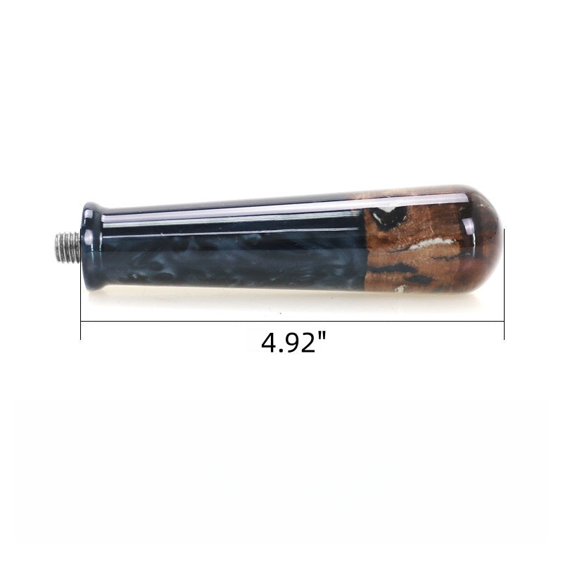 The resin handle is finished smooth for a comfortable grip and a clean visual match to stainless hardware, with an open-bottom portafilter silhouette that keeps the setup understated on the bar. Individually crafted by skilled artisans; grain, tone, and pattern naturally vary—every piece is uniquely yours. Subtle variation is part of the design.