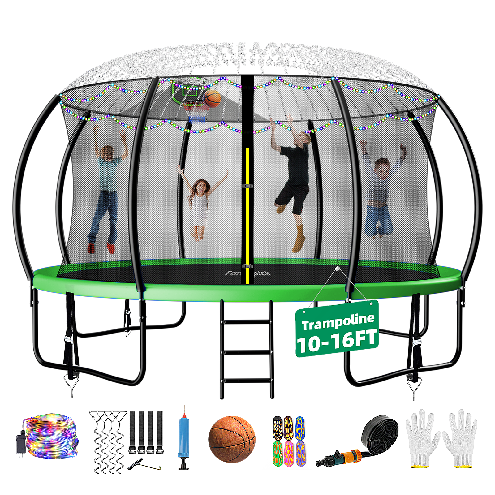 - Family-Friendly Accessories: Includes LED light, sprinkler hookup, basketball hoop, and socks for interactive play and nighttime fun.