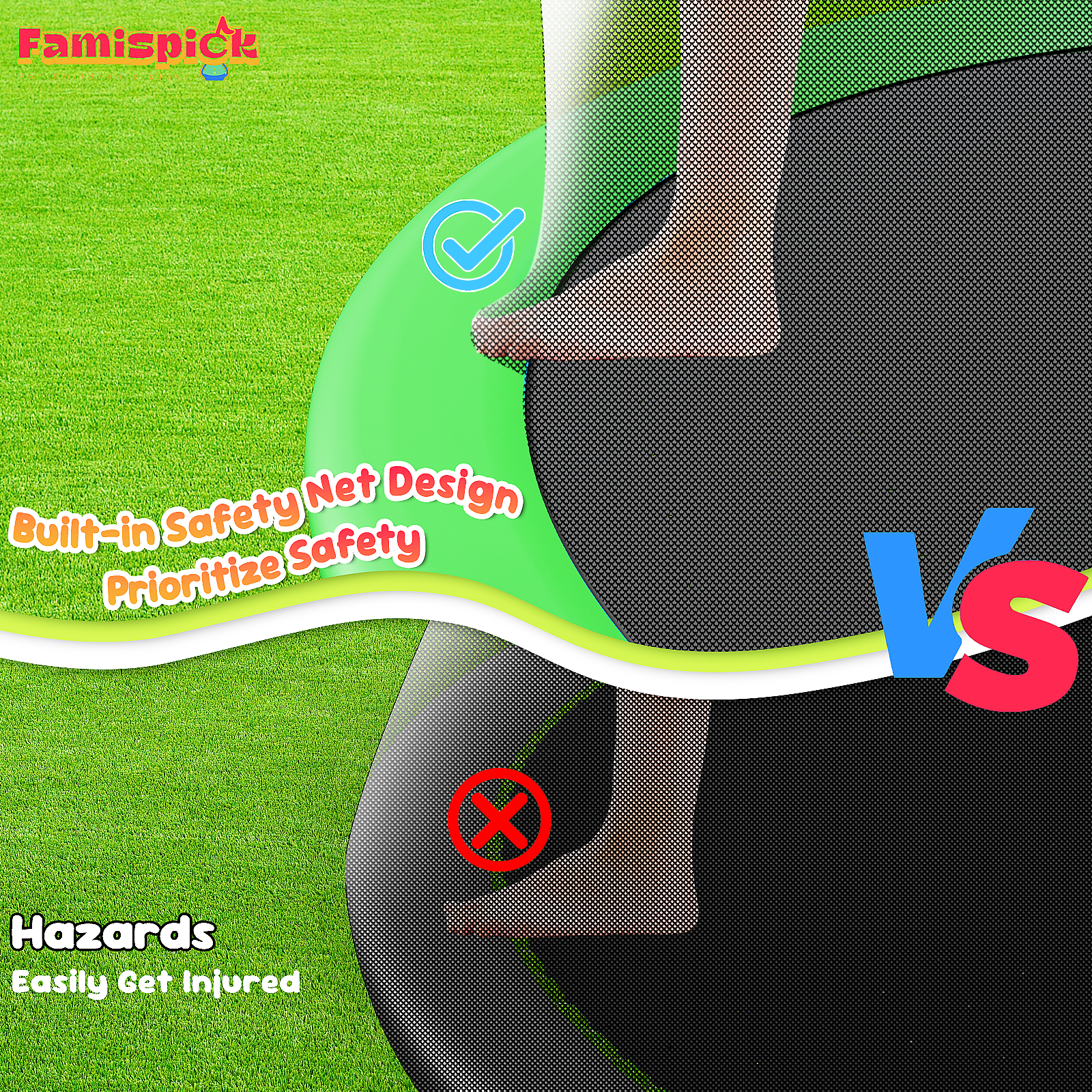 - All-Weather Jump Surface: UV-resistant polypropylene mat and PVC padding ensure consistent bounce performance for outdoor use year-round.
