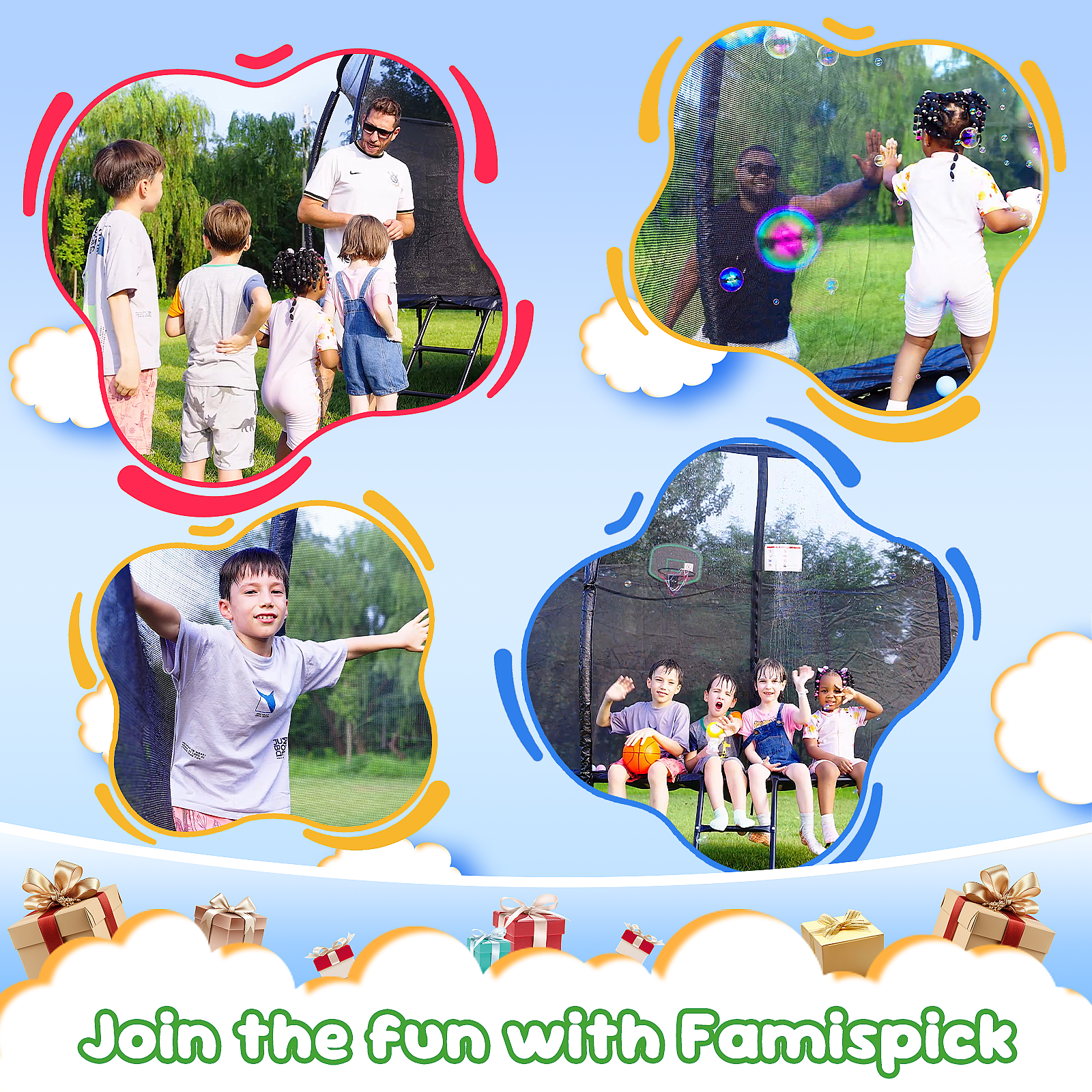 - 360° Safety Enclosure: Anti-UV high-density net and eight padded poles create a full barrier, preventing falls and keeping kids safe while jumping.