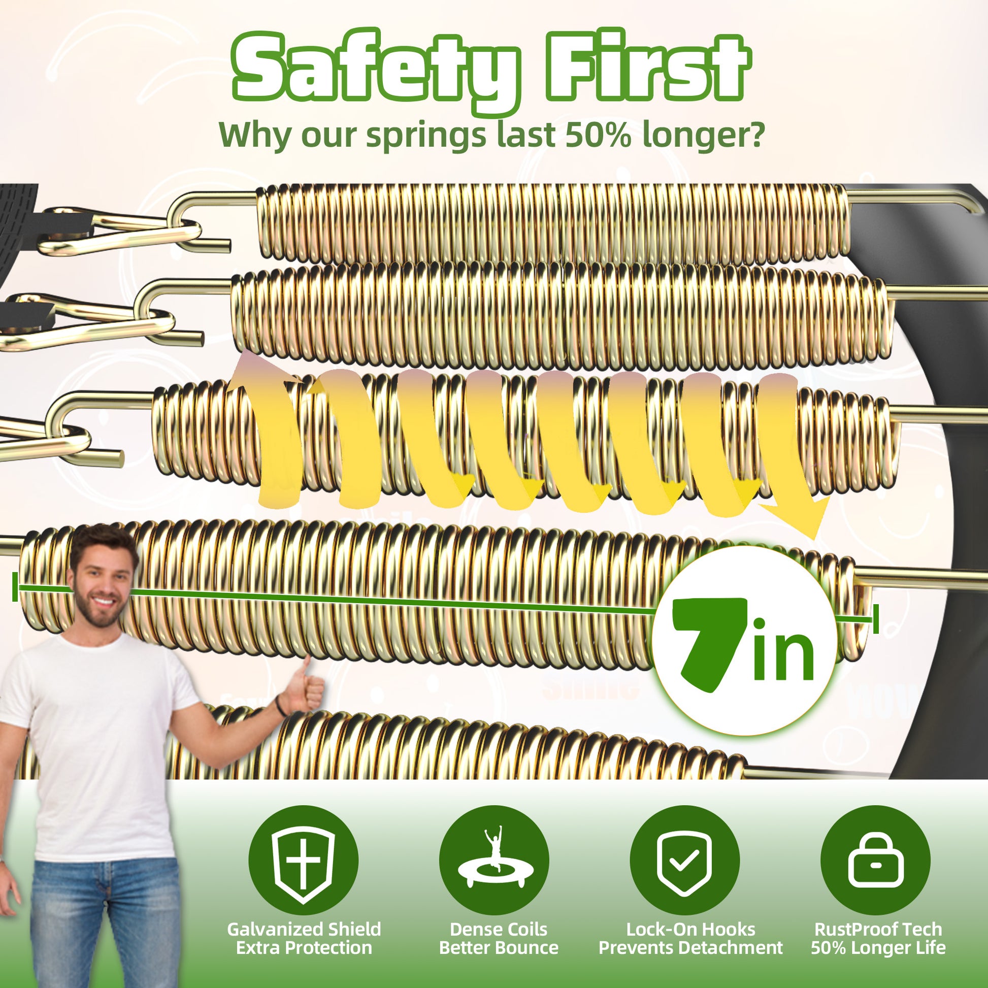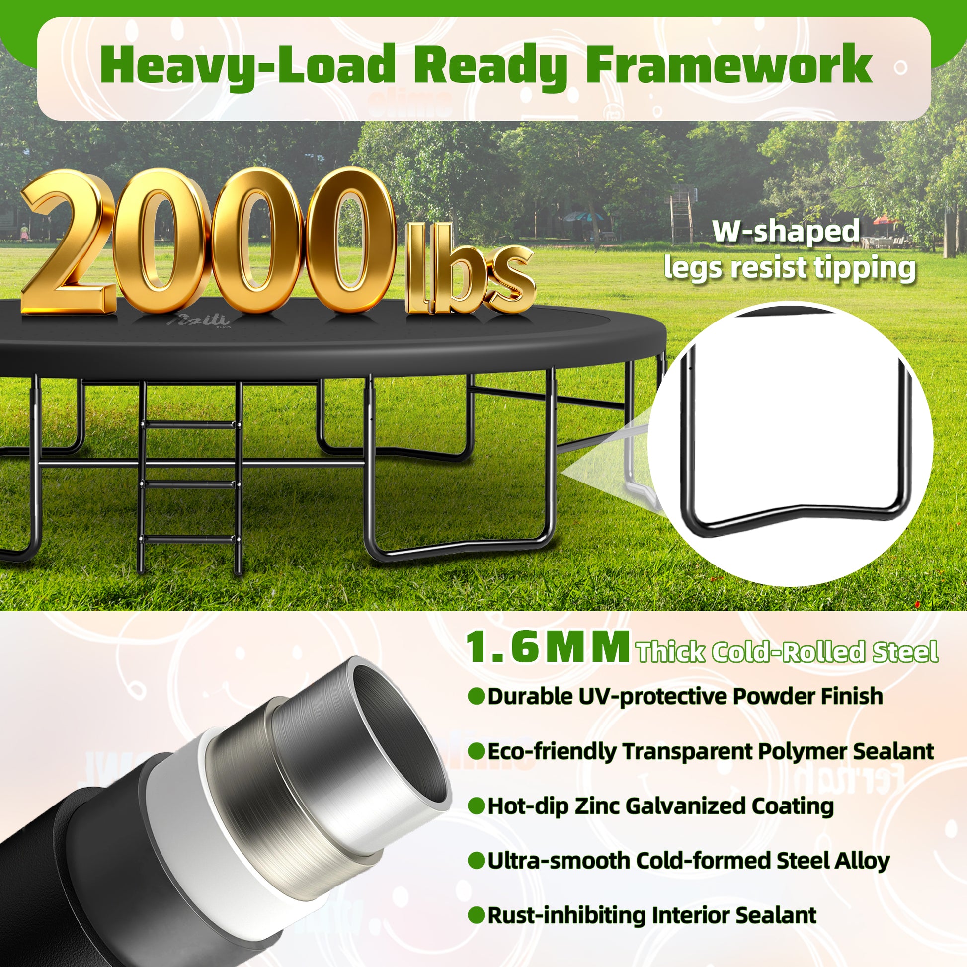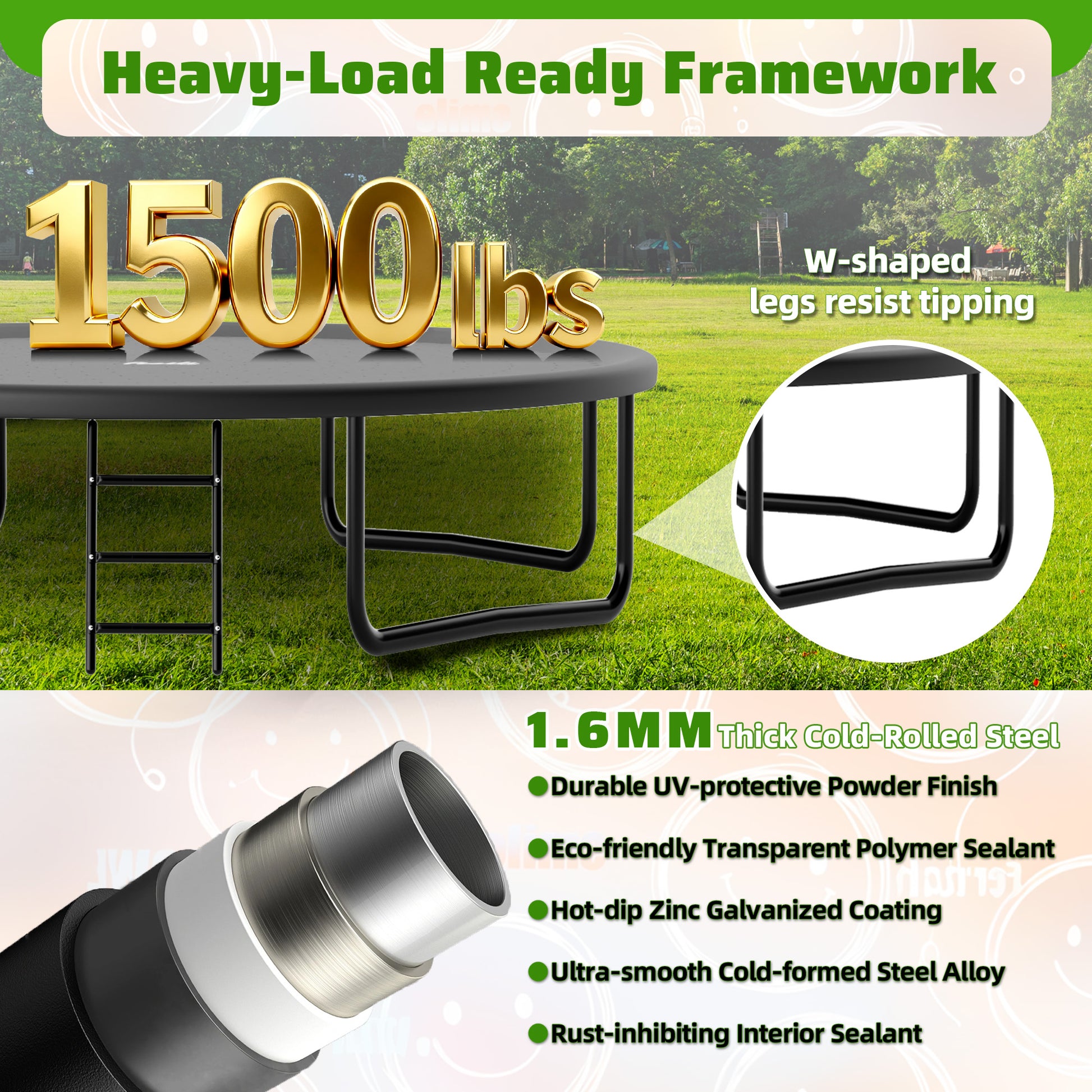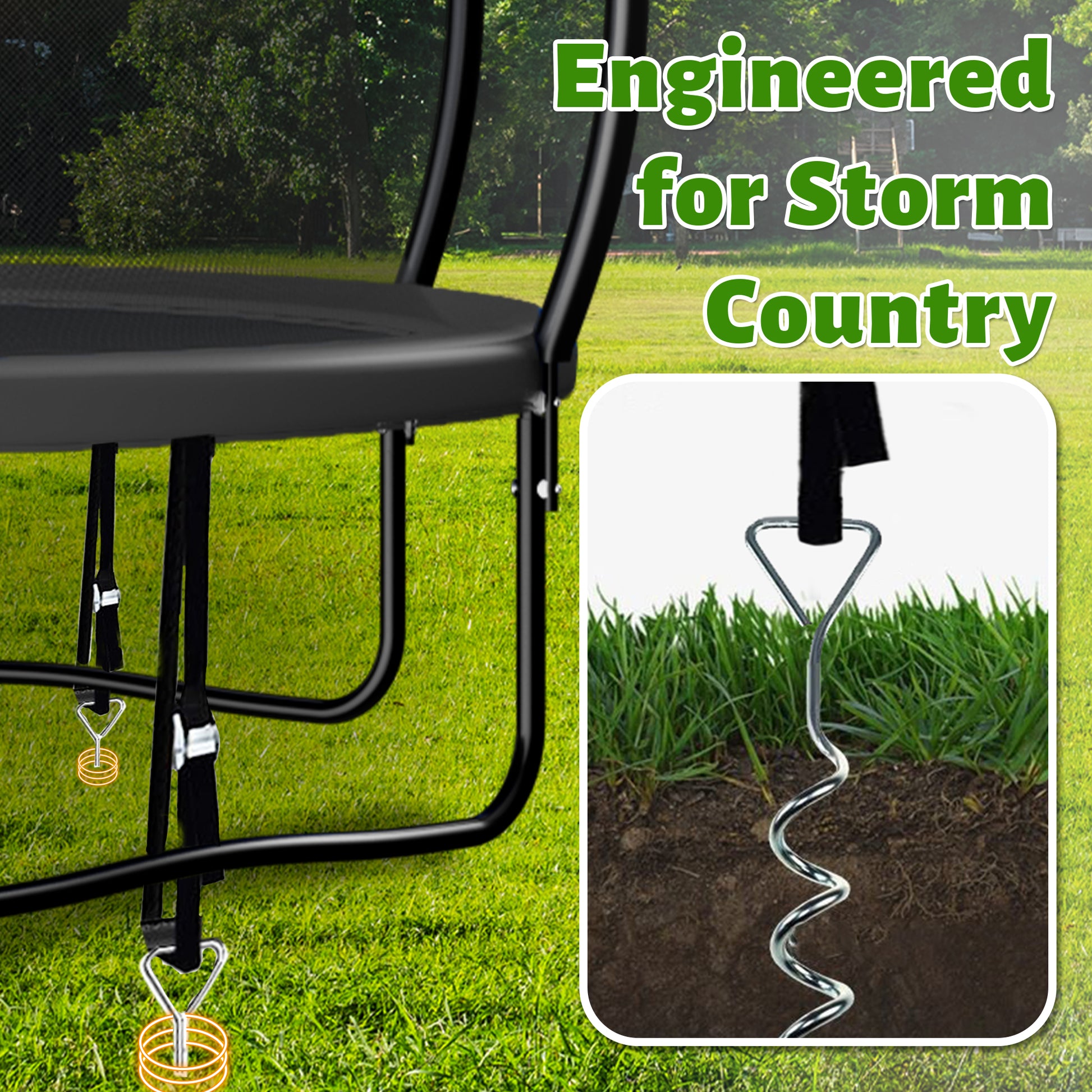 - All-Weather Jump Surface: UV-resistant polypropylene mat and PVC padding ensure consistent bounce performance for outdoor use year-round.